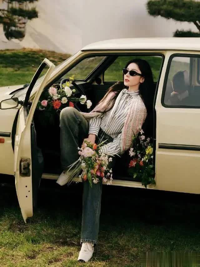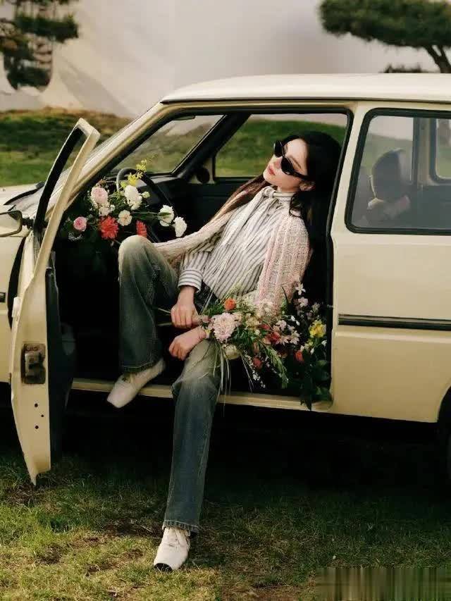 还有这幅黑超猫眼墨镜,更是氛围感神器。利落猫眼线条完美修饰脸型,黑超冷冽酷感刚好中和整套造型的柔媚甜感,一冷一甜的对冲让热巴的浓颜优势被无限放大,不用刻意摆pose,往车门边一靠,大明星气场直接拉满,不刻意耍帅却自带高光。还有腕间细款Dior手链,若隐若现的金属光泽在抬手间悄悄透出精致感,不抢戏却让整套造型细节感十足。